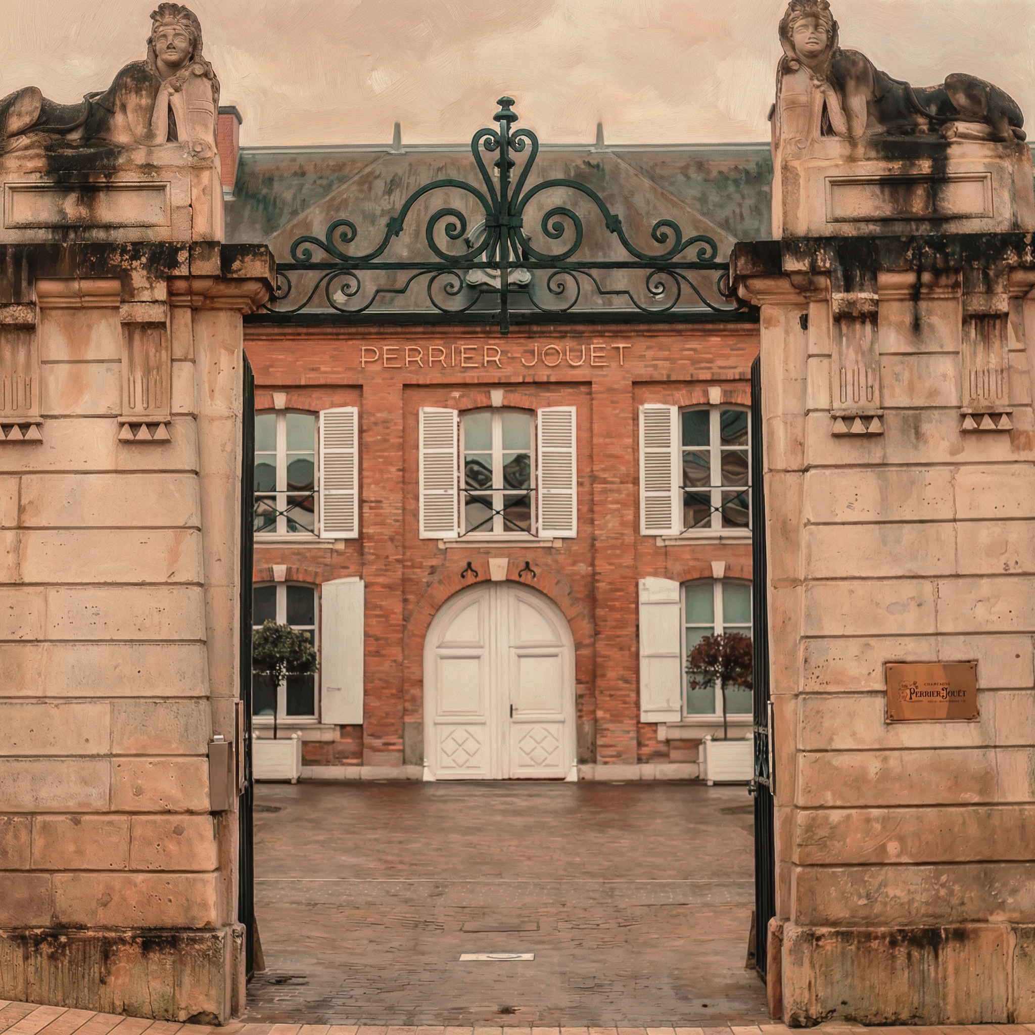 A golden moment at the Perrier-Jouët champagne house, where light dances through crystal. This piece embodies the elegance and craftsmanship of the Champagne region. Part of the Parisian Moments collection.