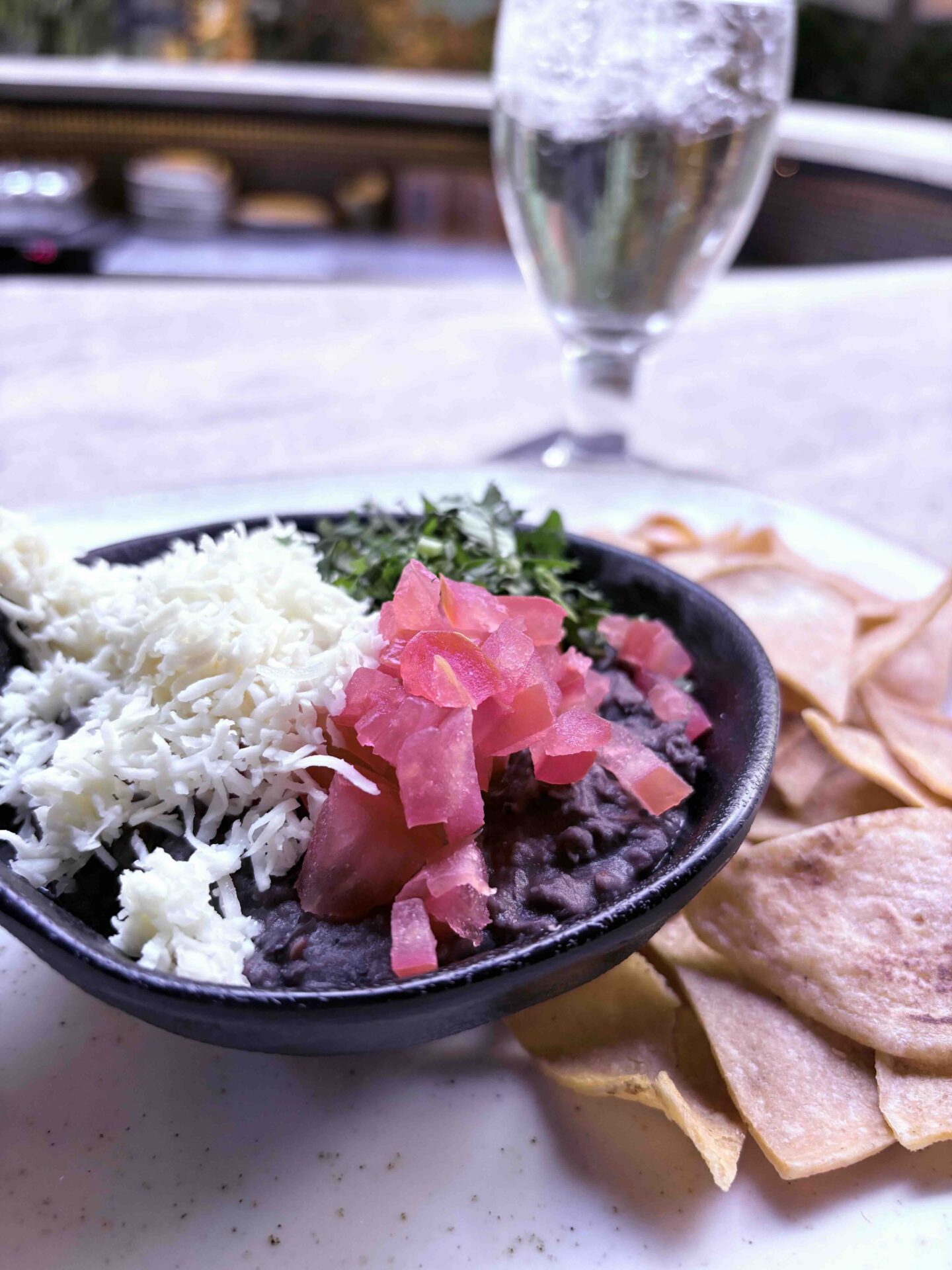 For food, I went straight for my favourite: the Beans (3,500 CLP) — a red and black bean puree with Palmita cheese, tomato and cilantro, served with tortilla chips. Simple, earthy and perfectly seasoned — comfort food in its purest form.